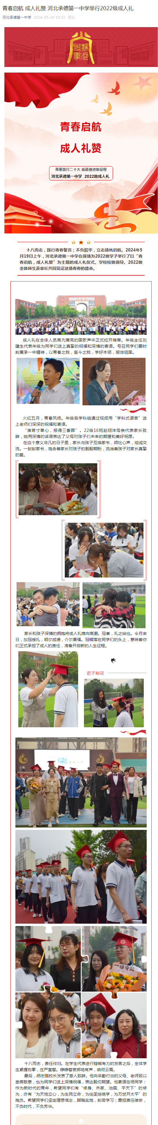 青春?jiǎn)⒑?成人禮贊 河北承德第一中學(xué)舉行2022級(jí)成人禮