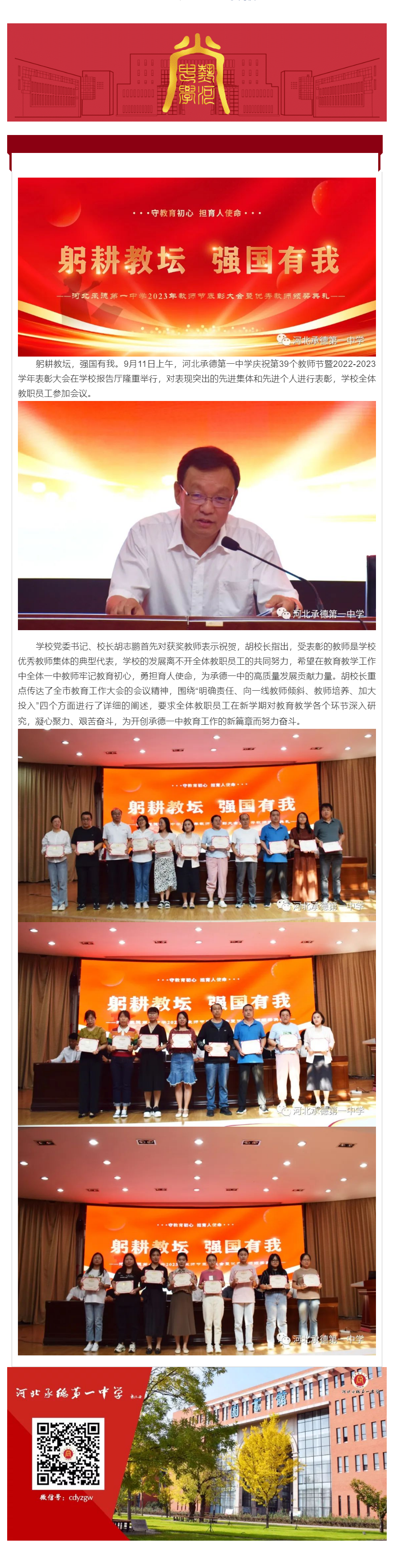 躬耕教壇 強國有我 河北承德第一中學召開慶祝第39個教師節暨2022-2023學年表彰大會