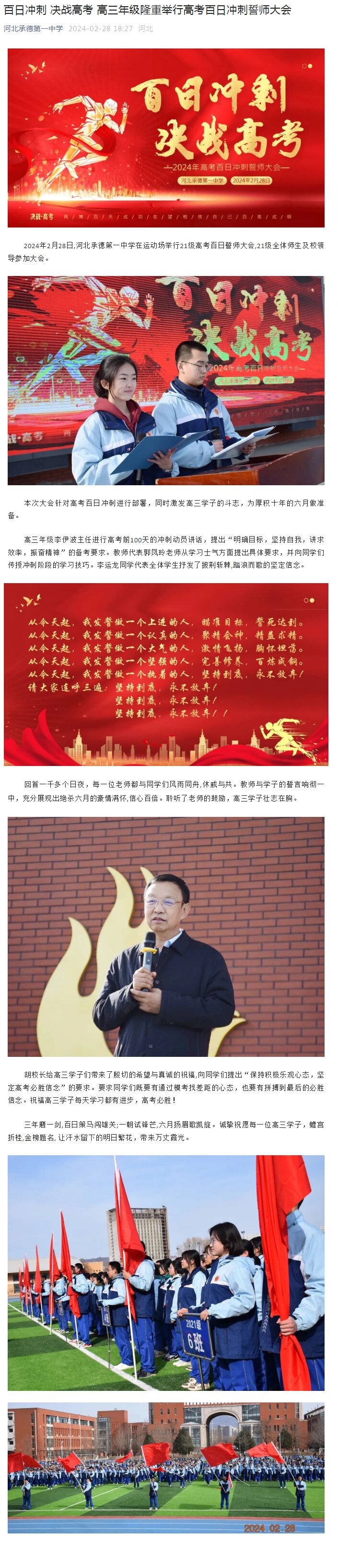 百日沖刺 決戰高考 高三年級隆重舉行高考百日沖刺誓師大會