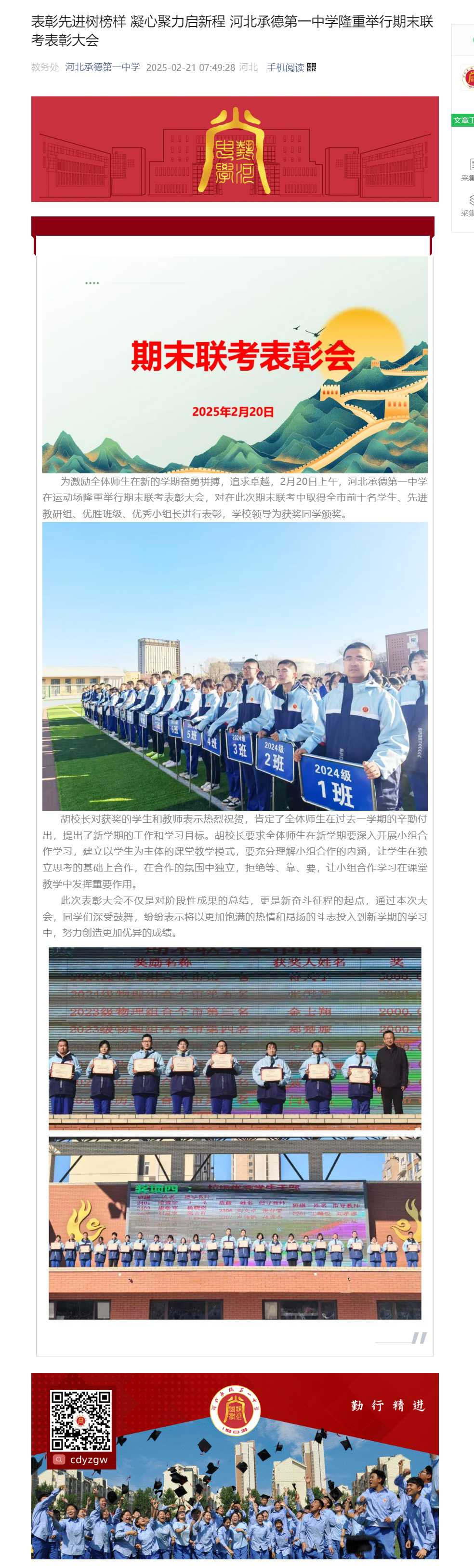 表彰先進(jìn)樹榜樣 凝心聚力啟新程 河北承德第一中學(xué)隆重舉行期末聯(lián)考表彰大會(huì)
