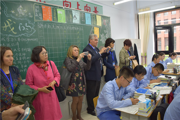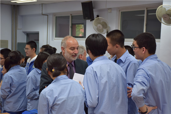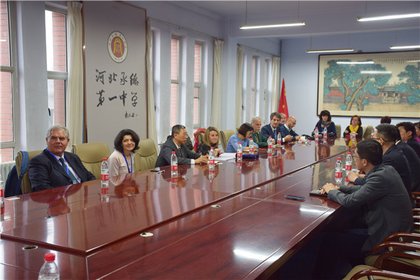 意大利威尼托教育官員交流訪問團(tuán)是由意大利威尼托省十八所中小學(xué)校的校長組成的,訪問主旨是與中國中小學(xué)交流座談。 由國務(wù)院僑辦組織,受承德市政府僑務(wù)辦公室委派,我校榮幸地承擔(dān)了此次接待任務(wù)。接待期間,訪問團(tuán)與我校領(lǐng)導(dǎo)和師生代表就中意兩國的中學(xué)教育教學(xué)和學(xué)校管理進(jìn)行了廣泛的交流與座談;他們走進(jìn)一中英語課堂,與一中英語教師和學(xué)生進(jìn)行了面對(duì)面的多元交流,尤其對(duì)我校的英語教學(xué)進(jìn)行了深入的探討,同時(shí)進(jìn)一步協(xié)商了有可能合作的領(lǐng)域。