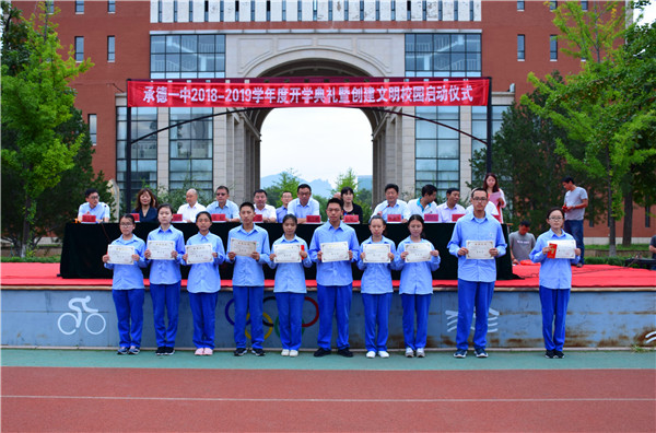 秋高氣爽迎新期 奮力拼搏展新貌。8月30日上午9:00,伴著莊嚴的國歌聲,河北承德第一中學2018-2019學年開學典禮在學校運動場隆重舉行。