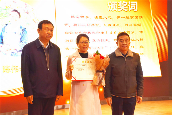 李建華副校長宣讀獎勵方案,明確多勞多得、優績優酬的基本獎勵原則。學校領導為在高考及期末聯考中取得優異成績的教研組、優秀管理團隊及狀元班教師頒發獎狀。
