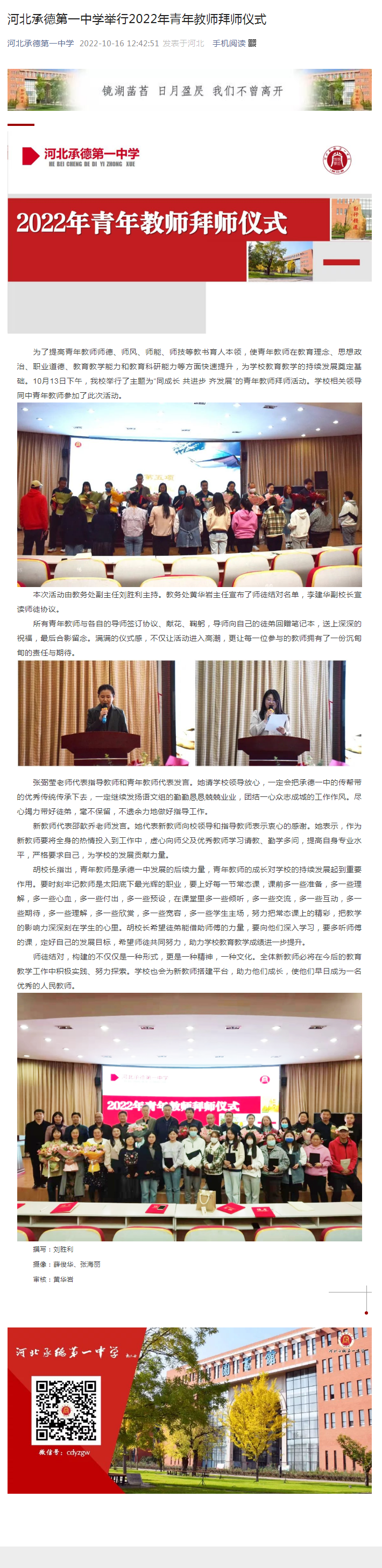 河北承德第一中學舉行2022年青年教師拜師儀式